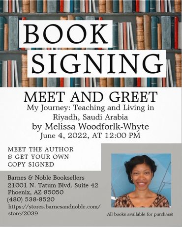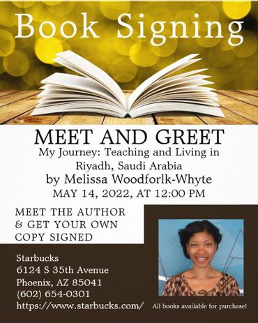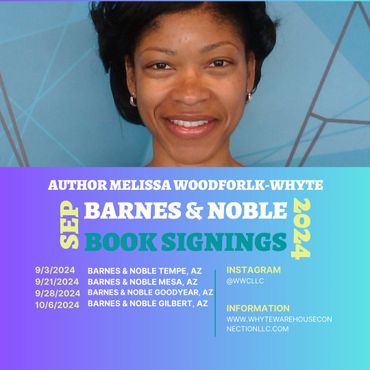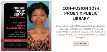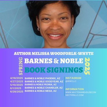 Come and meet author Melissa Woodforlk-Whyte at the Black Authors Meet & Greet Book Fair, 1850 N Central Avenue, Phoenix, AZ 85004 on Saturday, February 15, 2025, from 12:00 pm to 4:00 pm. See you there!