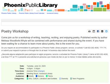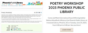 Come and Meet International Award Winning Author Melissa Woodforlk-Whyte at the Phoenix Public Library Local Author Fair, Burton Barr Central Library, 1221 N. Central Avenue, Phoenix, AZ 85004, Saturday, November 8, 2025, 11:00 am to 2:00 pm. See you there!